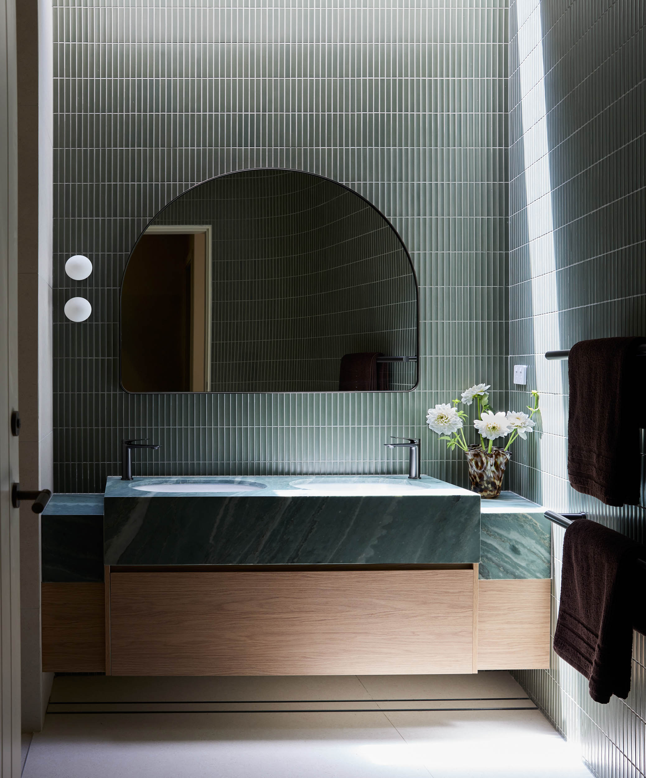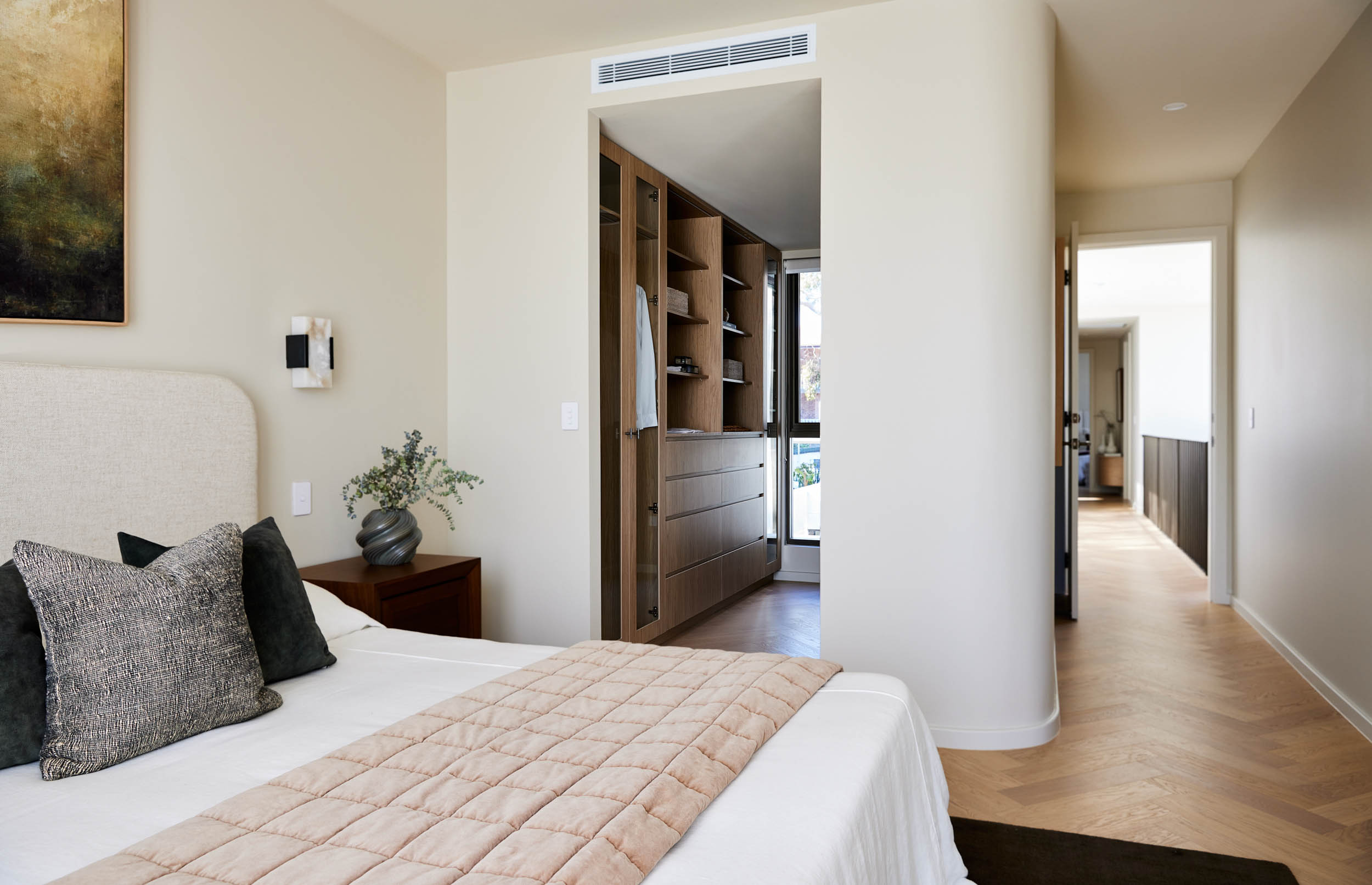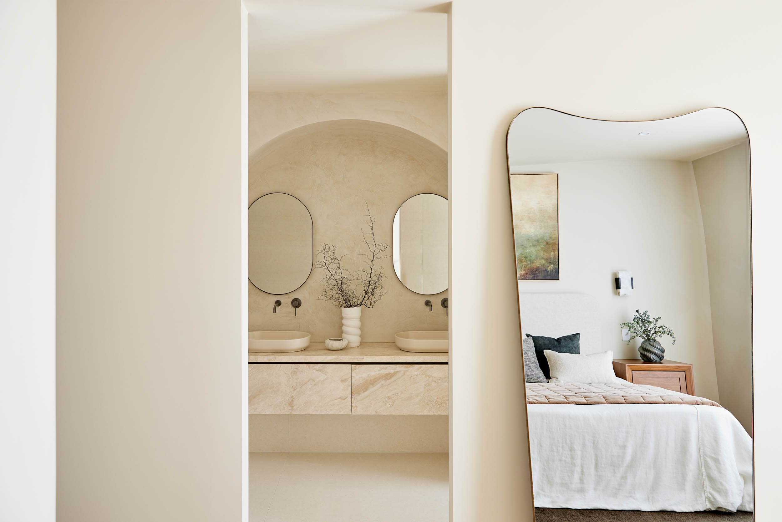 Located in Marrickville, this brand new build saw us engaged to review the architectural plans and develop a considered interior design response. Inspired by the architecture, we embraced curves and texture to inform detailed cabinetry design, spatial planning and finish selections. Our role was to enhance the architectural vision while ensuring the home felt warm, functional and cohesive, resulting in a refined family residence with strong appeal for sale.